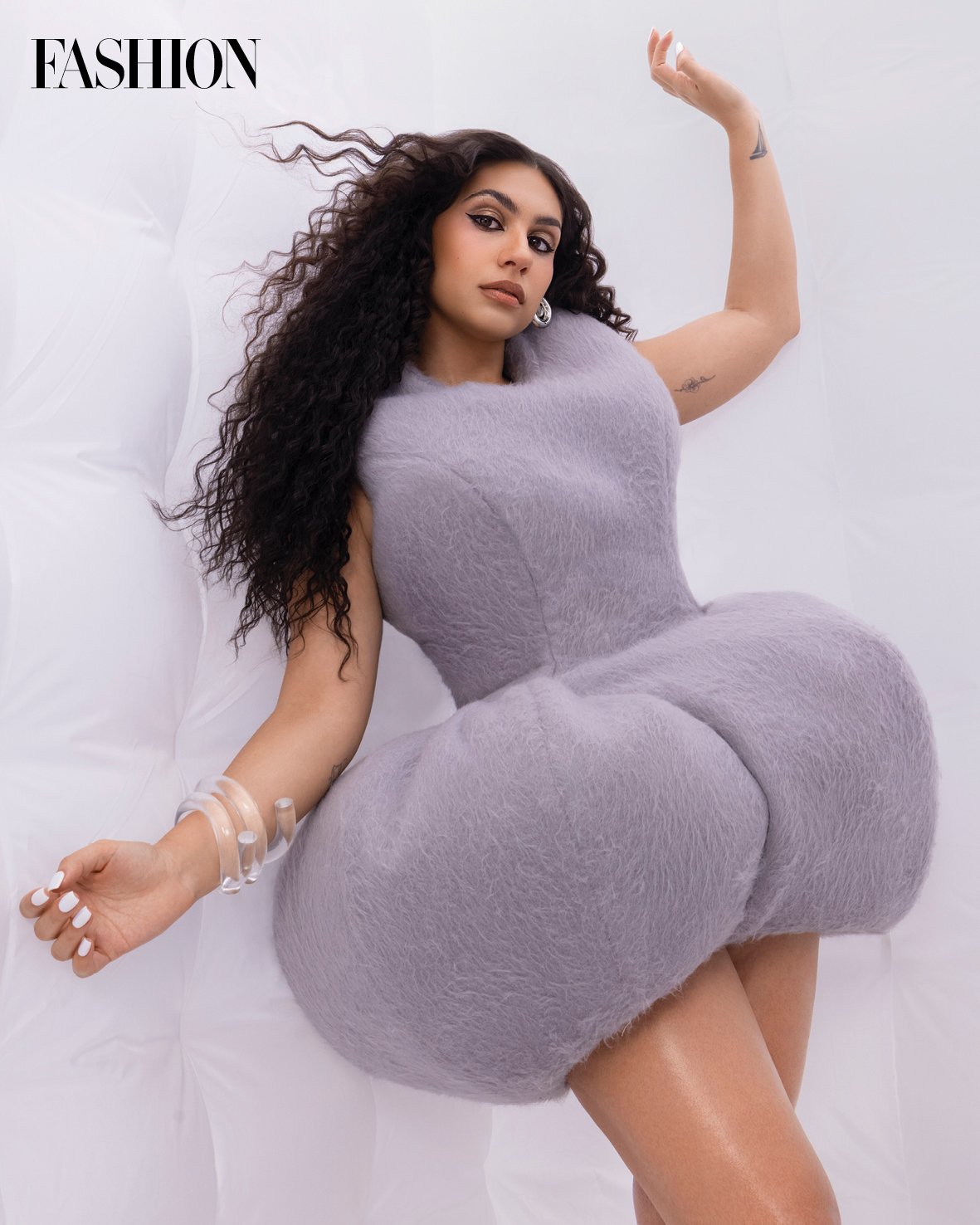 Later that afternoon, on-set for her FASHION cover shoot, she has switched into work mode. With a crew looking on, she poses inside a white bouncy castle wearing a pair of purple high-heeled boots. “Sorry, my eyes are watering!” she announces to the room. (This optical interference is caused by the wind machine blowing in her face.) Then, I see her doing something she mentioned earlier—a trick to cope with the overstimulating effect of the spotlight. “It sounds cheesy, but breathing helps,” she had told me. “Closing my eyes for a second, taking a moment.” I watch her, in between wobbles, as she inhales and releases, making space for stillness. Life is full of interruptions, abrupt endings and imperfect conclusions. But as Cara knows, it helps to breathe, blink and find beauty in the balancing act.