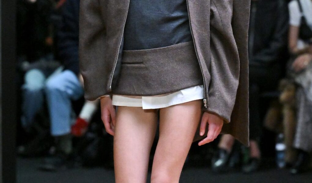 Rounding out the first official day of Paris Fashion Week, Swedish brand Hodakova turned inward on a darkened, mirrored set at the Carrousel du Louvre, in a study of what we reveal and what we withhold. Tailored coats and razor-sharp blazers projected composure from the front, while backs fell away to expose skin. The beauty inspiration – ‘sweaty pianist’ – was inspired by a musician who lost herself in the moment. Models walked barefoot, as if caught mid-dressing, grounding the collection in intimacy before riding boots and wedge heels reintroduced a note of structure.