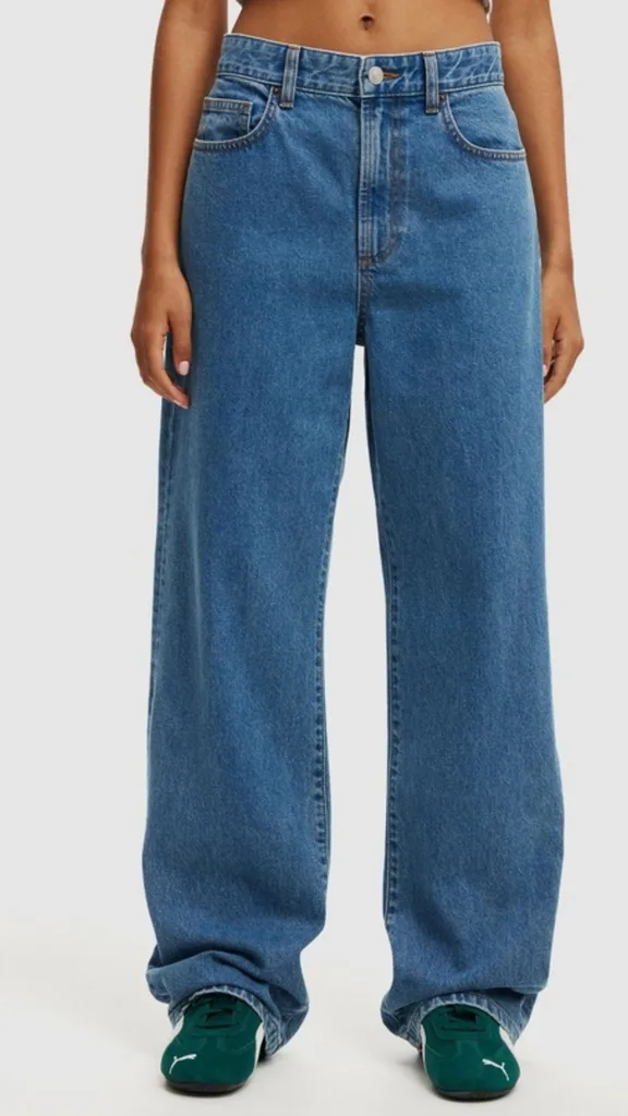 If you’re after denim that pools at the ankle, at an affordable price, look no further. These soft denim jeans from Cotton On have a relaxed, comfortable fit and slouchy, super-soft fabrication. Size up and wear with a crop top for a relaxed, loose at the waist fit.