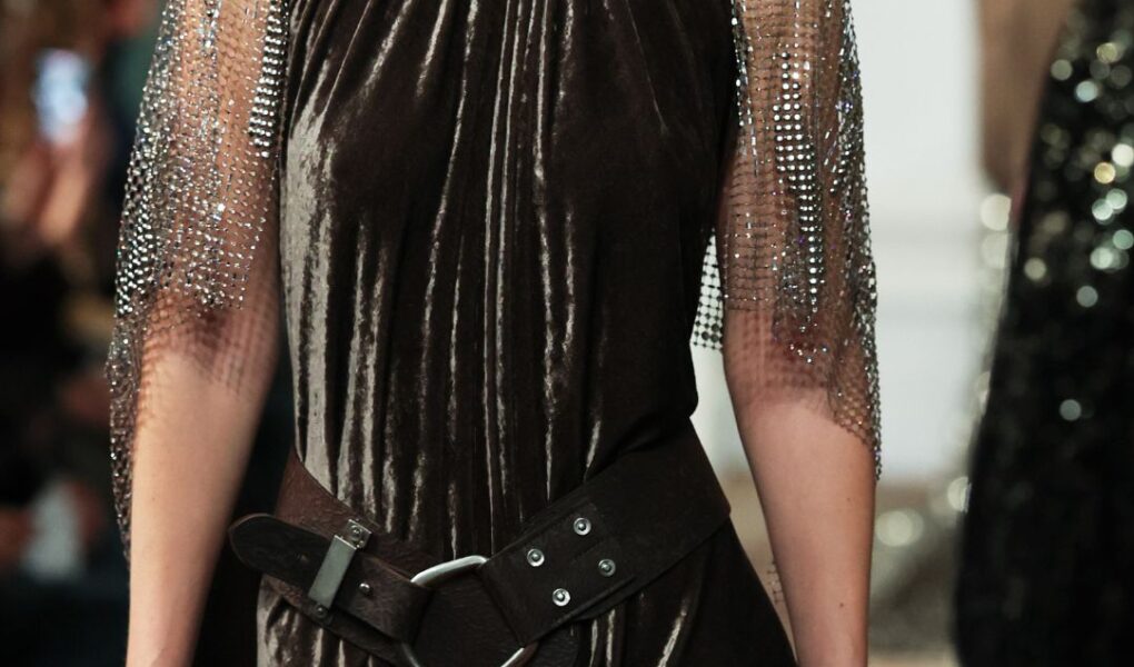 It was a first look into a runway steeped in tactile and conceptual contrasts. Velvets and silks layered with metallic accents that gleamed like chain mail, and earth-toned leathers that looked worn by travel and sometimes fire against delicate finishes.
