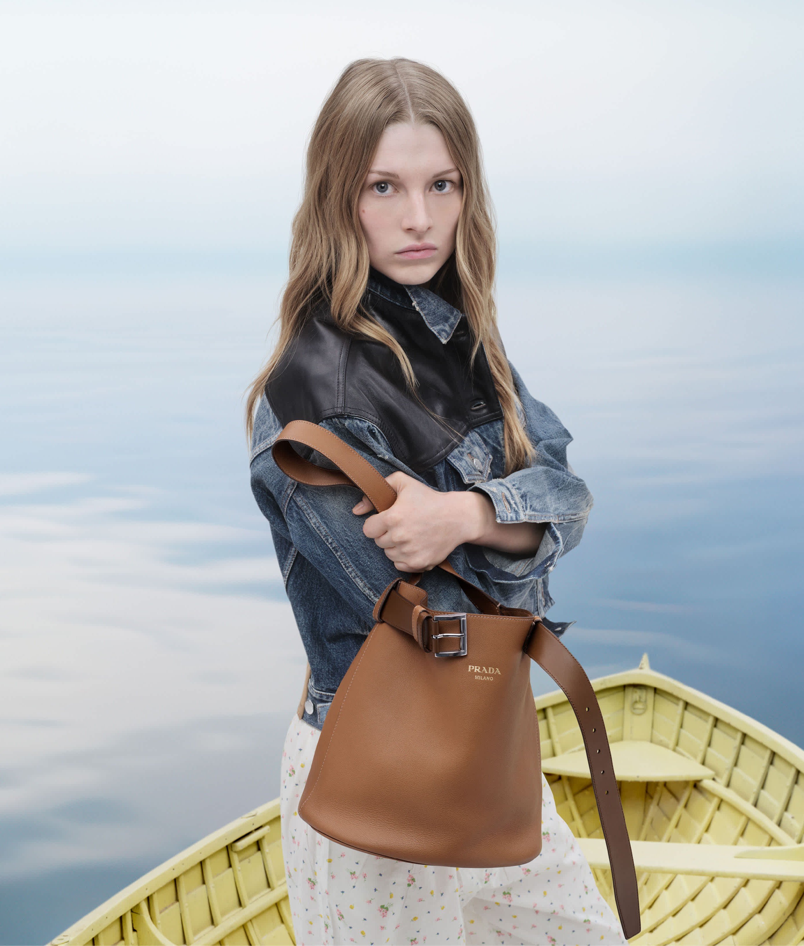 Kendall Jenner, Hunter Schafer and Troye Sivan — we aren’t talking about the guest list of an A-list after party, but rather the cast of Prada’s “Days of Summer” campaign. Directed by industry icons Miuccia Prada and Raf Simons, the new campaign by Oliver Hadlee Pearch captures the serene, dreamlike mood of the Prada Spring 2025 collection. Models balance on vibrant gozzi—traditional Italian wooden boats—floating on a still sea, each styled in a unique look. Kendall Jenner carries a cow-print bag with a floral top and red leather hot shorts. Troye Sivan stands casually in a black T-shirt and jeans, holding a tote. The result is a quiet, surreal moment suspended in time. [cta affiliate=”skimlinks” align=”center” format=”button” url=”https://www.prada.com/ca/en/pradasphere/campaigns/2025/days-of-summer.html”]Learn More[/cta]