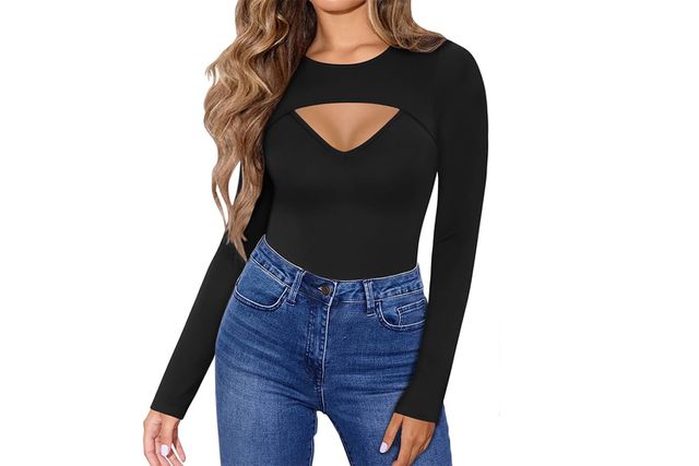 But you don’t have to just stick to triangles. The Vichyie blouse isn’t only $17, but it boasts a super cute teardrop shape. It’s perhaps the most modest option; though it still delivers that wow factor. The scoop neckline also highlights your collarbones, and the longer length is ideal for tucking into your favorite bottoms.