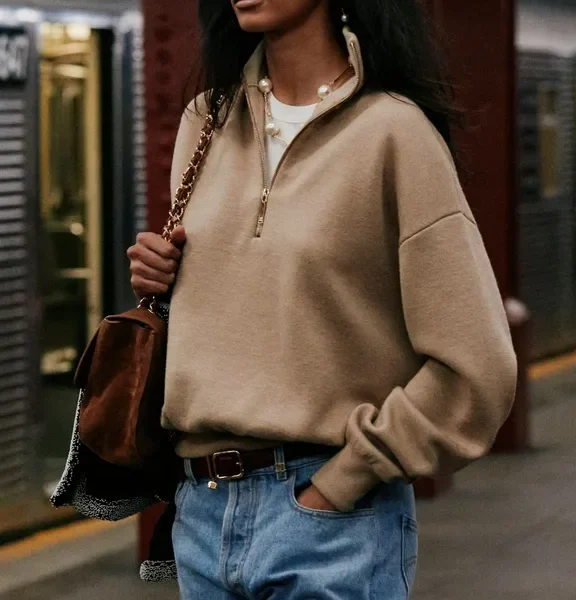 A distant rumble startled the audience, and models spilt out as if from a train car. Some strode forth in eveningwear — sharp, daring, ready for a party — others ambled as if headed to a lecture or the office. Blazy’s sophomore collection reworked everyday wear — jeans, pullovers — but pitched them with tension, as if costumes worn by famous actresses playing ordinary women. The colours were a touch brighter, the tailoring slightly exaggerated, garments falling just so, and the accessories resolutely luxe. Yet despite the glamour, these women felt like New Yorkers you might spot on the subway.