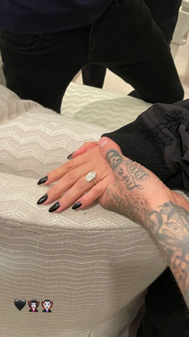 Our obsession with oval engagement rings started back in 2021 when Kourtney Kardashian and Travis Barker released a series of emotional proposal photos. Once we’d wiped the tears from our eyes, we were blinded by the dazzling rock on her ring finger. Yes, we’re talking about the six-carat, oval-cut ring, which is estimated to cost a cool $1 million.