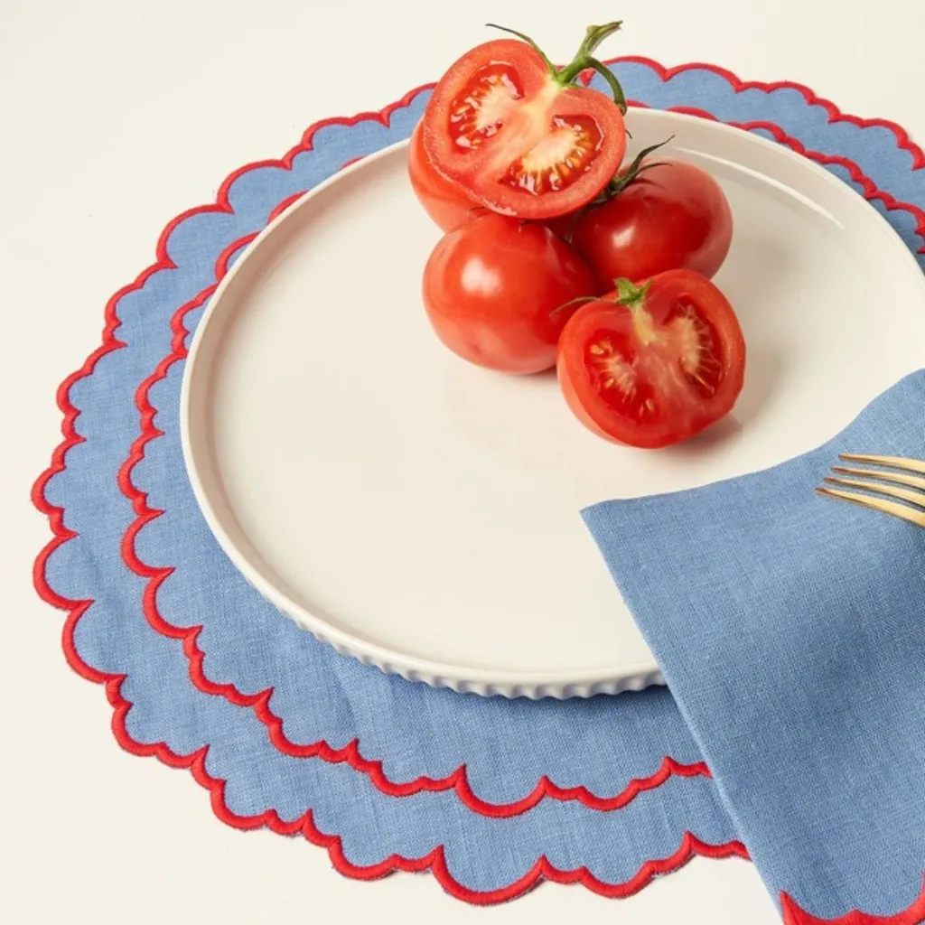 These 100 percent European napkins feature hand-sewn scalloped hems and a unique rounded shape we’re totally charmed by.