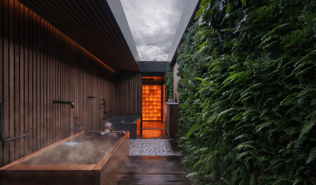 The Ethos: A pioneer in self-guided thermal spa circuits, Circle Wellness entered the market with its signature WellPod (a multi-sensory 50° C sauna featuring aromatics, music and lighting) for private buyers. In 2019, the company expanded, introducing a spa concept built around a full hydrotherapy circuit, which was a huge hit with Vancouverites. Now, it continues to serve fans in the city—but from a new flagship location on Granville Island. With no on-site practitioners, the facility is open daily (6:30 a.m. to 10:15 p.m.) and can be privately booked (for one to two people at a time) for 90- or 120-minute sessions. The Vibe: Housed in parallel storage containers, this state-of-the-art sanctuary fuses design motifs from the Pacific Northwest and Asia, creating an oasis nestled amid the big city. Combining light and sound, it offers a truly immersive sensory journey. The Signature Service: The circuit begins with an open-air shower, followed by a dip in a cedar soaking tub, which is drained and cleaned between sessions. Next, step into an infrared sauna with Himalayan salt walls, before awakening your senses with a refreshing cold plunge. Close out the circuit on the heated riverstone bed, embracing total relaxation and rejuvenation. Repeat the cycle until your time is up.