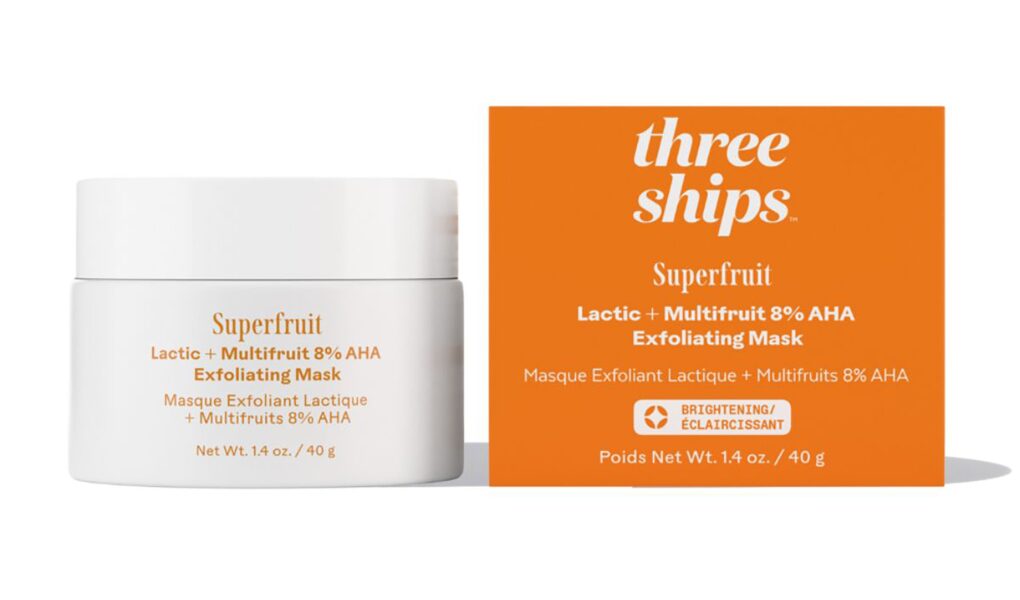 This mild exfoliant from the Toronto-based brand can be used on all skin types, including sensitive ones, as it’s formulated with a multi-fruit-acid blend and lactic acid to gently resurface. [cta affiliate=”skimlinks” align=”center” format=”button” url=”https://go.skimresources.com?id=130X979127&xs=1&url=https%3A%2F%2Fwww.threeshipsbeauty.ca%2Fproducts%2Fsuperfruit-exfoliating-mask%3Fvariant%3D39662035763271%26country%3DCA%26currency%3DCAD%26utm_medium%3Dproduct_sync%26utm_source%3Dgoogle%26utm_content%3Dsag_organic%26utm_campaign%3Dsag_organic%26tw_source%3Dgoogle%26tw_adid%3D%26tw_campaign%3D23072136921%26tw_kwdid%3D%26gad_source%3D1%26gad_campaignid%3D23078115551%26gbraid%3D0AAAAACR0fhlZEBqhwQ-LWSAty_wyKiuOl%26gclid%3DCj0KCQiAyP3KBhD9ARIsAAJLnnbBiguoorMt7ZnvwFkBfjmxo1qltsuWEsq68_IhRxlRFZzidFvrG8caAvmHEALw_wcB”]Shop Now[/cta]