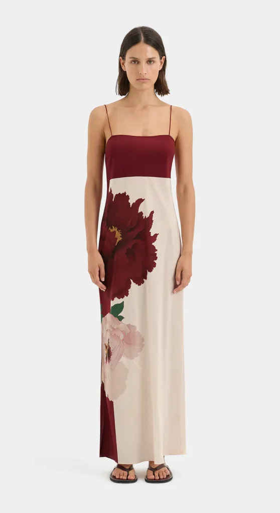 Crafted from SIR signature lightweight silk crepe this slip dress is light as air and features a romantic floral motif. The straight neckline gathers under the bust for flattering definition, and the bias cut design allows for a soft drape. Sexy without being over the top, it’s perfect for a wedding where you might run into a former or future flame.